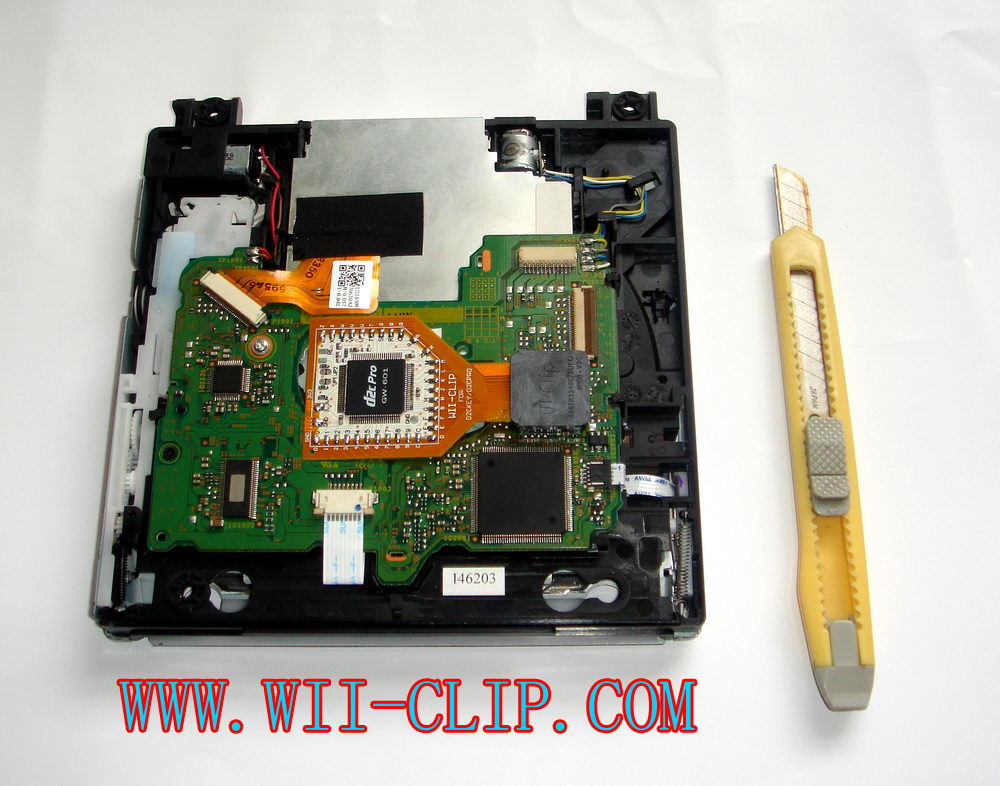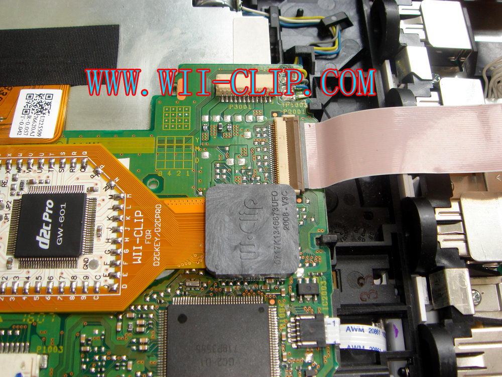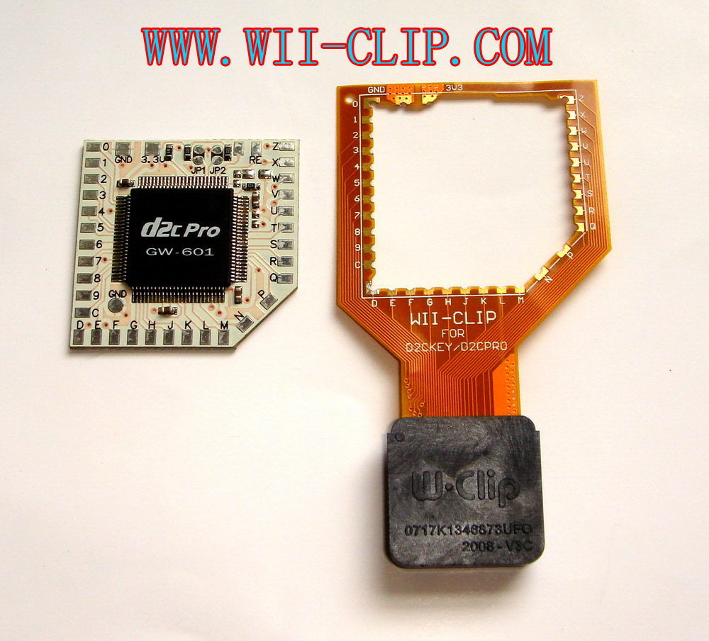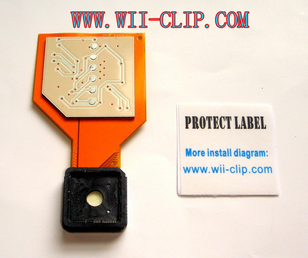 Notice: If you want to pull out the WII-CLIP from your Wii mother board, you CAN'T pull it out by your hand directly, you MUST use some very sharp tool like the small knife , to prize the WII-CLIP case leave the D2C chipset, and remember you CAN'T prize one corner only, you MUST prize all 4 corners to make it leave the big D2C chipset smooth! Otherwise the pins of WII-CLIP will be damage very easy.