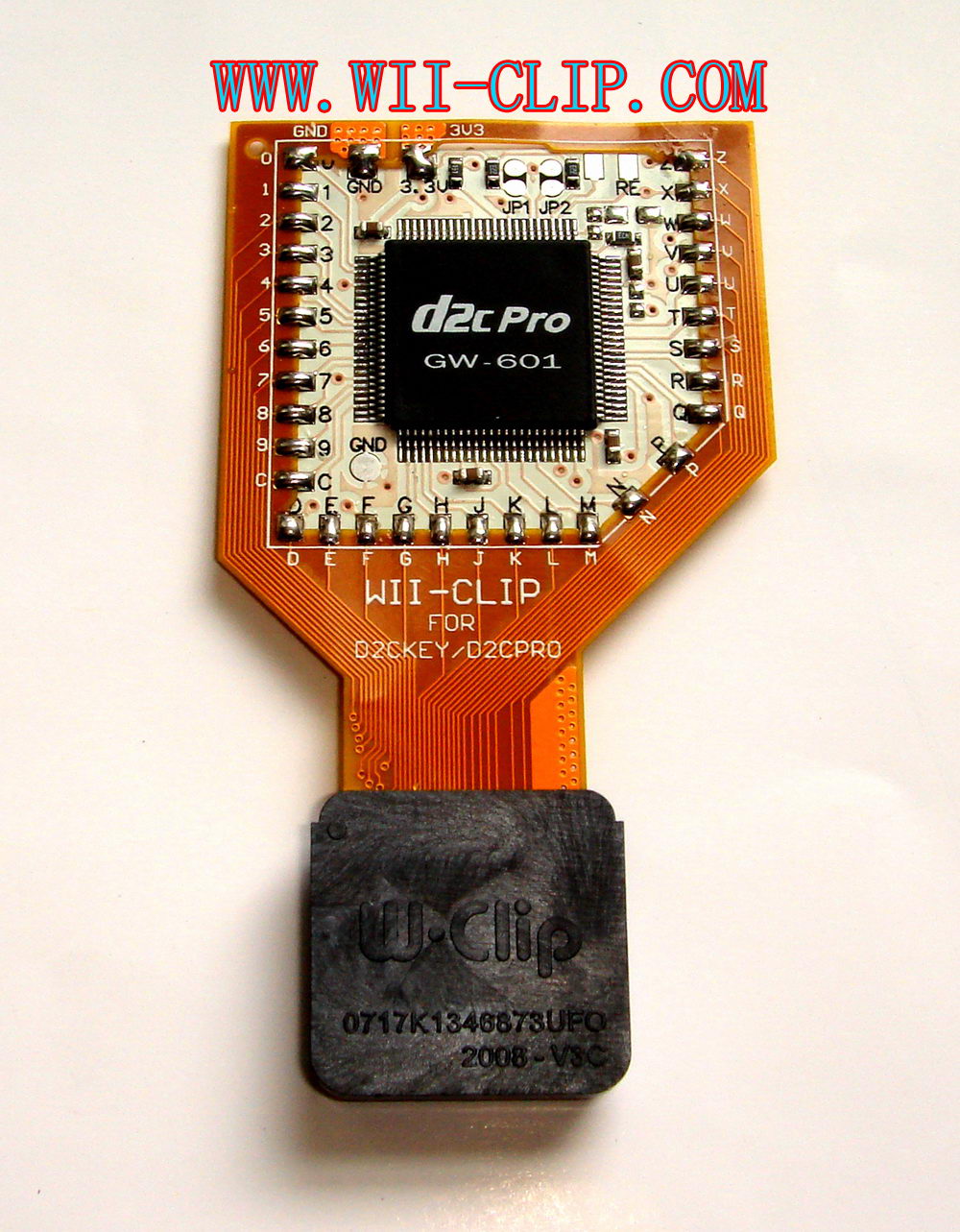 OK, plug your WII-CLIP onto the D2C chipset, and press it down until you can feel it have clip the D2C chipset very well, maybe you can hear one very slight "click" sound too, and please check your PCB side view to make sure the WII-CLIP plastic case is almost reach PCB already, then mean it's install complete and connect well. This is the most important step!